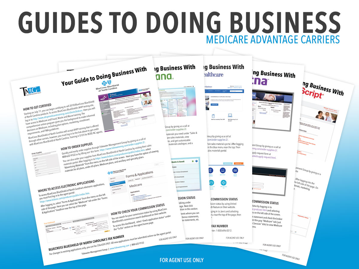These handy carrier guides to doing business explain how to get certified, how to order supplies, where to access e-applications, and more. Give us a call to gain access to these great resources!